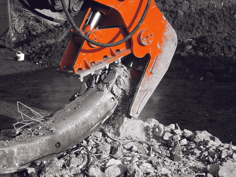 Even on the smallest carrier excavator, there is sufficient power for very hard concrete and also to cut reinforcing wires and rods.